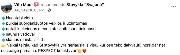 Visus atsliepimus galite rasti mūsų Facebook puslapyje